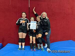 Mit 11 Spielerinnen und drei Betreuerinnen, also in relativ großer Besetzung, reiste unsere VSG Rebland am frühen Samstag, den 6.12.2025 mit dem Zug nach Freiburg um an dem Turnier teilzunehmen. Mit so vielen Spielerinnen konnten wir mit 3 Teams, dementsprechend also VSG Rebland 1,2 und 3, an den Start gehen. VSG 1 und 3 spielten in Qualifikation 3 und VSG 2 in Qualifikation 4. Pro Qualifikation gab es 8 Teams, insgesamt waren also 16 Mannschaften beteiligt. Nach vielen erfolgreichen Spielen und starken Ballwechseln, hatte alle drei Teams von uns Erfolge zu vermelden, denn jede Mannschaft der VSG Rebland konnte sich auf den vorderen Platzierungen wiederfinden. Letztendlich belegte VSG Rebland 3 Platz 6., die Mannschaft 2 spielte sich auf Platz 5. Das Team spielte fünf Spiele und vier davon in drei Sätzen, also alles knappe Ergebnisse mit tollem Einsatz auf dem Feld.